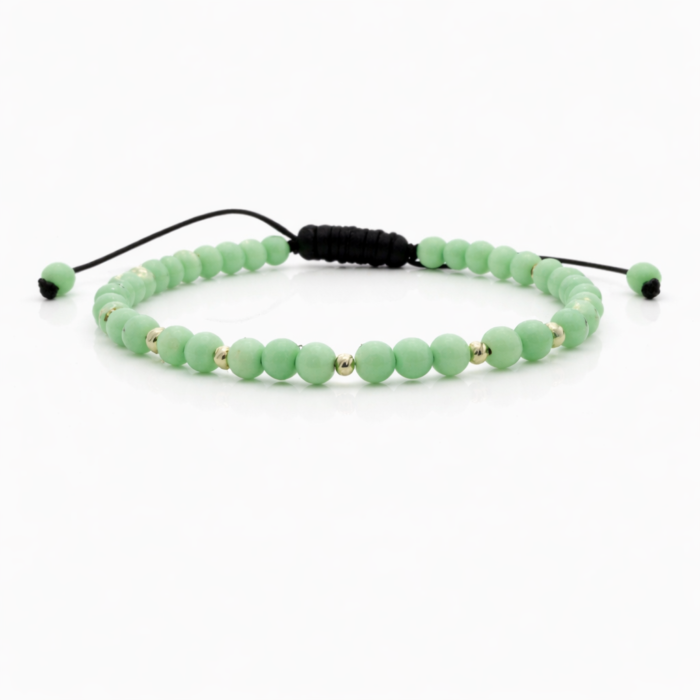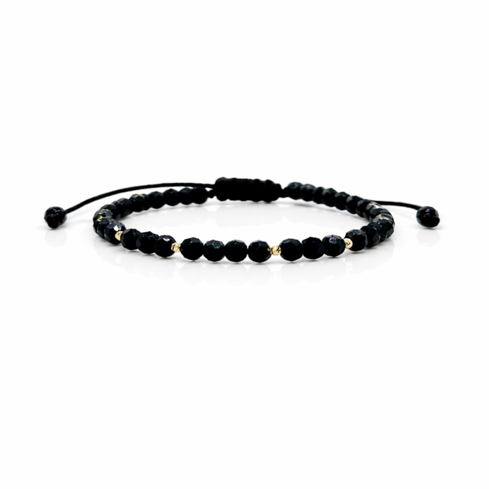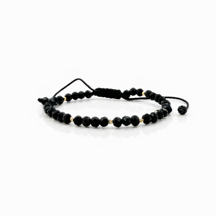 Bratara cu snur impletit si 20 bilute din aur 14k