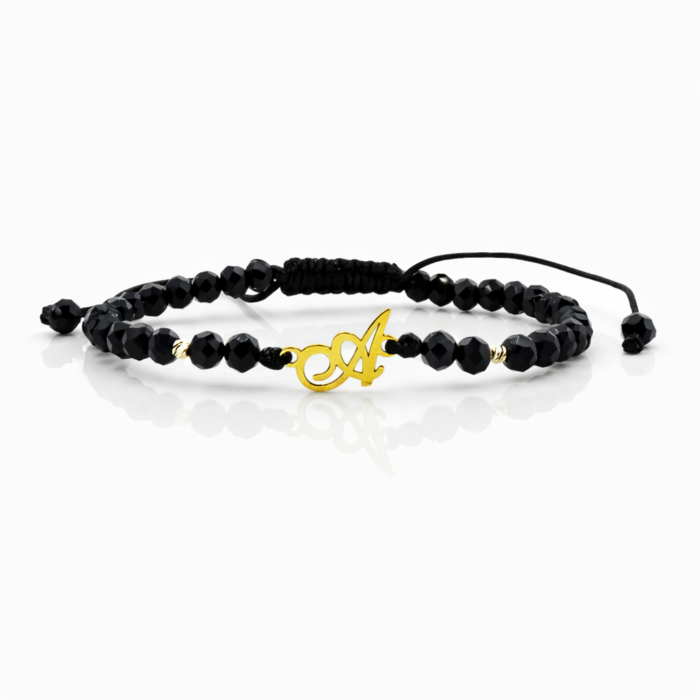 Bratara cu initiala si bilute din aur 14k si cristale
