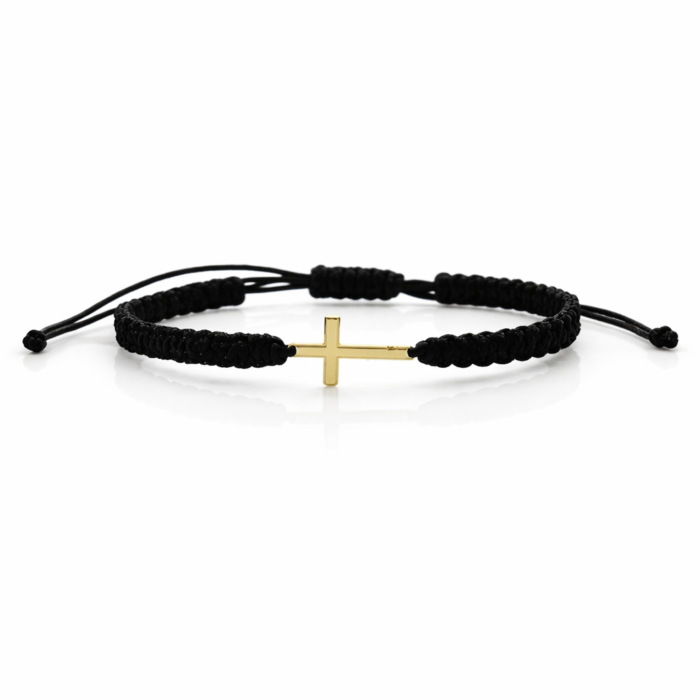 Bratara cu snur si cruce plina cu rama din aur 14k