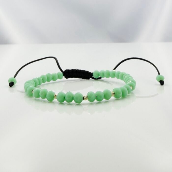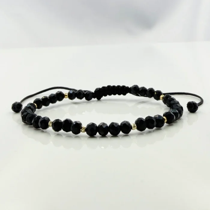 Bratara cu cristale rondele si 5 bilute de 2.5mm din aur 14k
