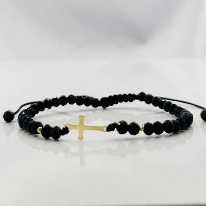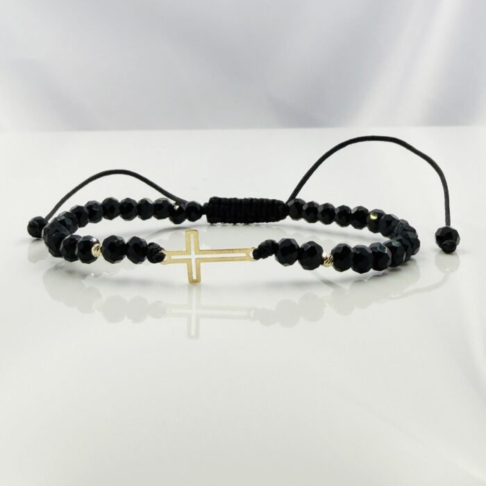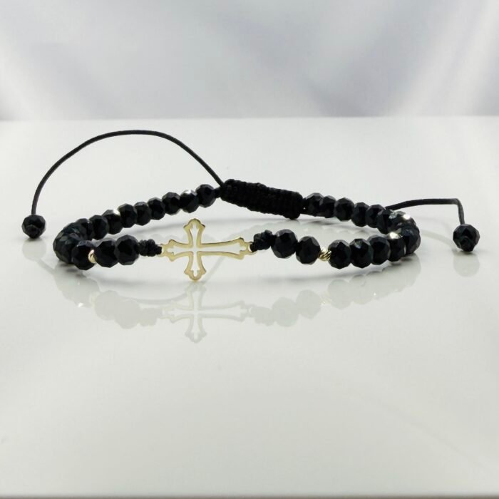 Bratara cu impletitura, cristale cubice si 12 bilute din aur 14k