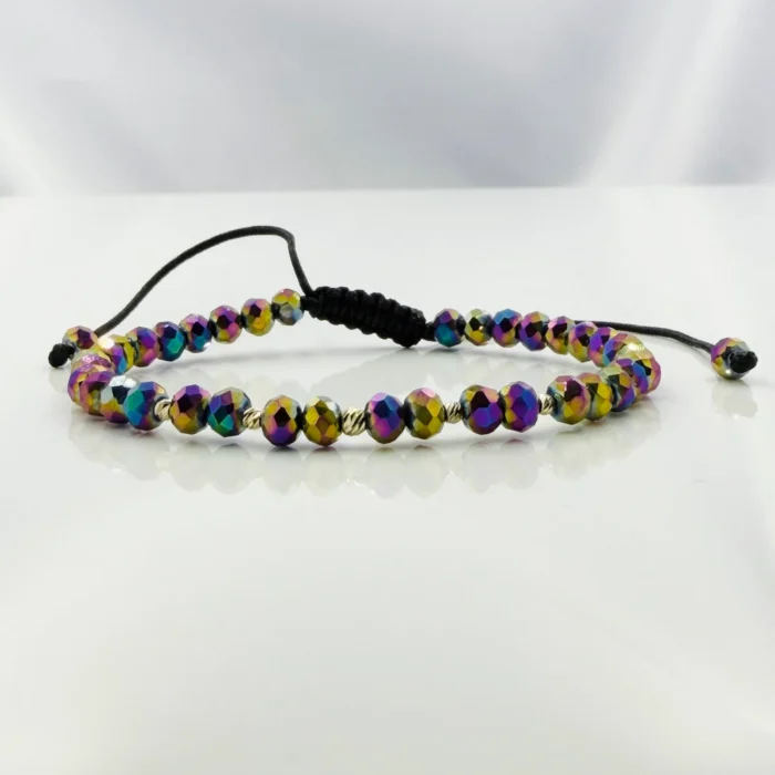 Bratara cu margelute Miyuki, cristale colorate si bilute din aur 14k