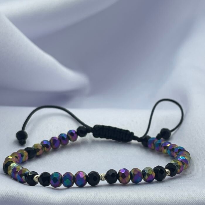 Bratara cu cristale, pandantiv ochi de deochi si 4 bilute din aur 14k