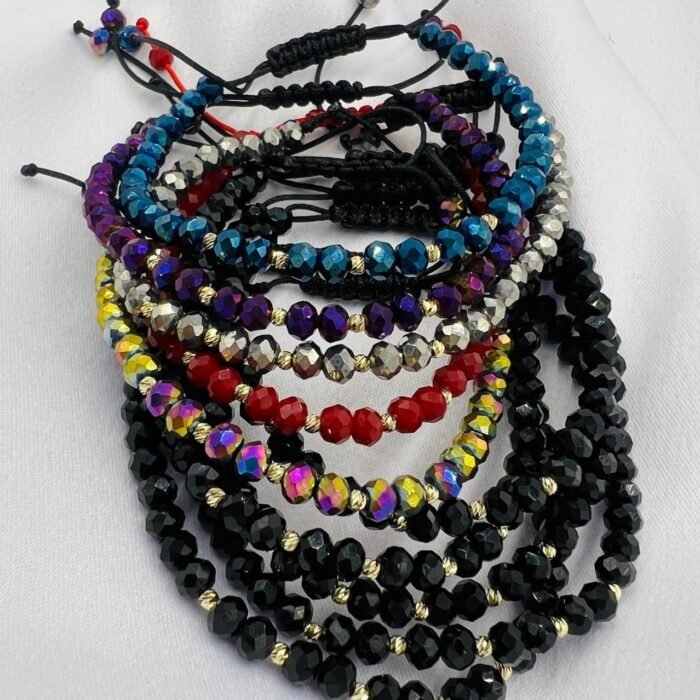 Bratara duo cu cristale rondele si 5 bilute din aur 14k