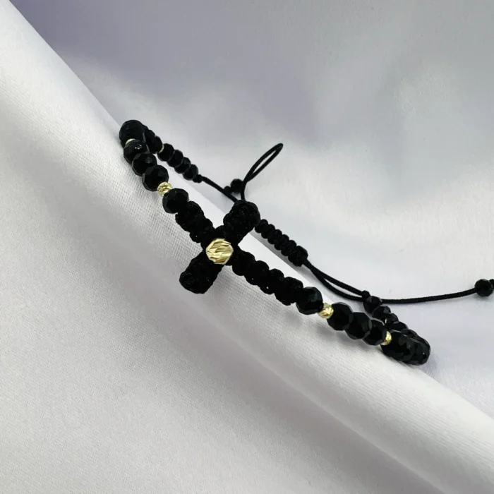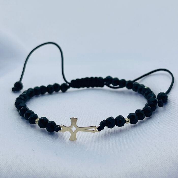 Bratara cu cristale, cruciulita 1.2cm si bilute din aur 14k