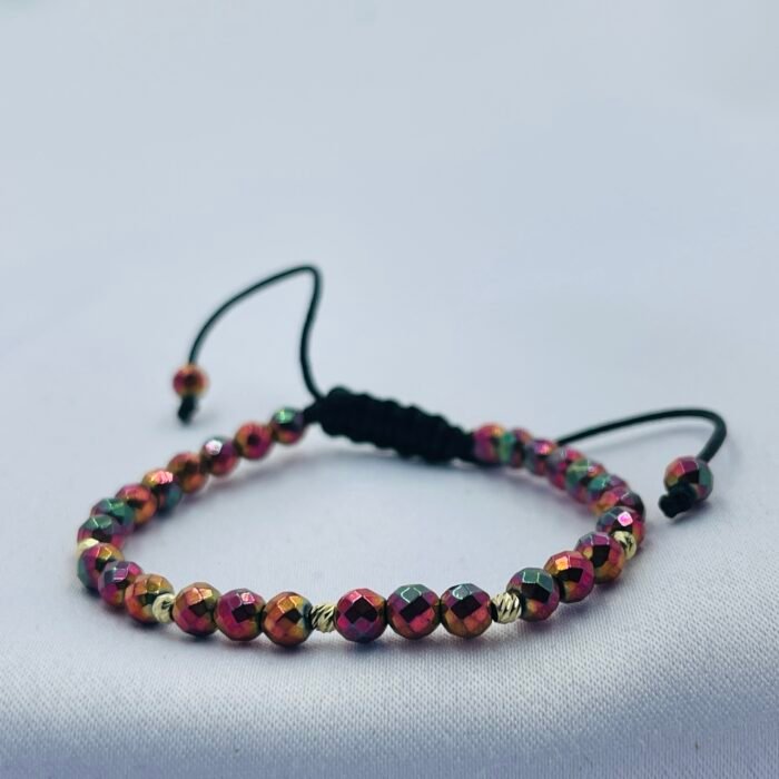 Bratara cu hematit fatetat colorat si 6 bile din aur 14k
