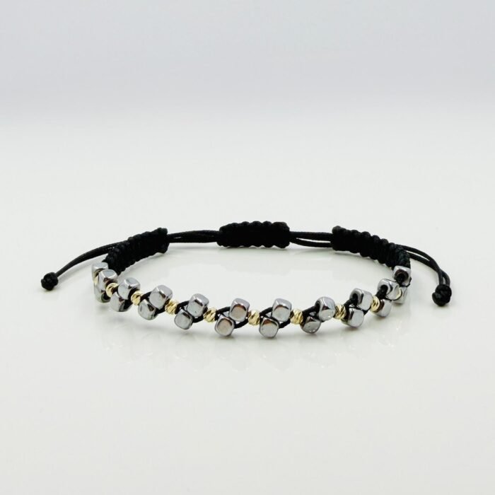Bratara cu hematit si 10 bilute de 2.5mm din aur 14k