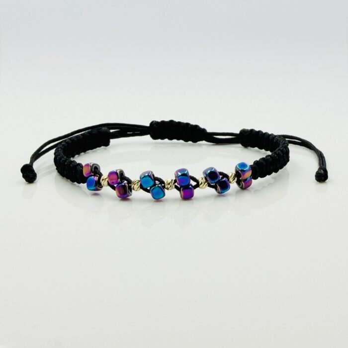 Bratara cu snur impletit si 10 bilute din aur 14k