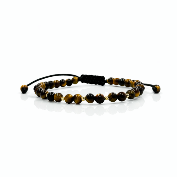 Bratara cu ochi de tigru si bilute din aur 14k
