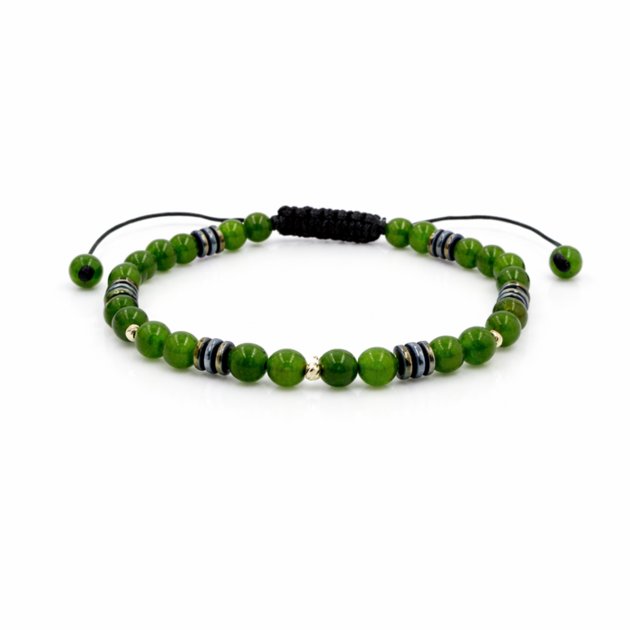 Bratara cu unakite si 7 bilute de 2.5mm din aur 14k