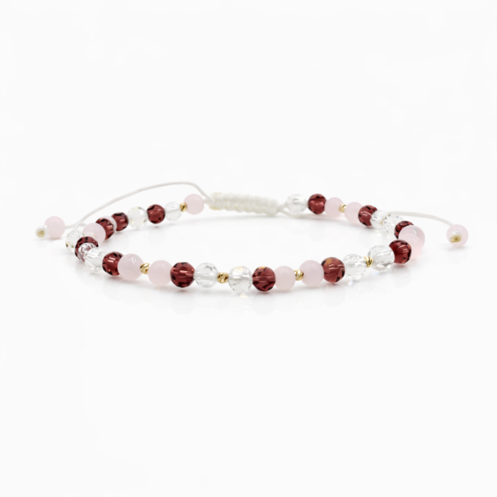Bratara cu cristale combinate (biconice si rondele) si 10 bilute din aur 14k