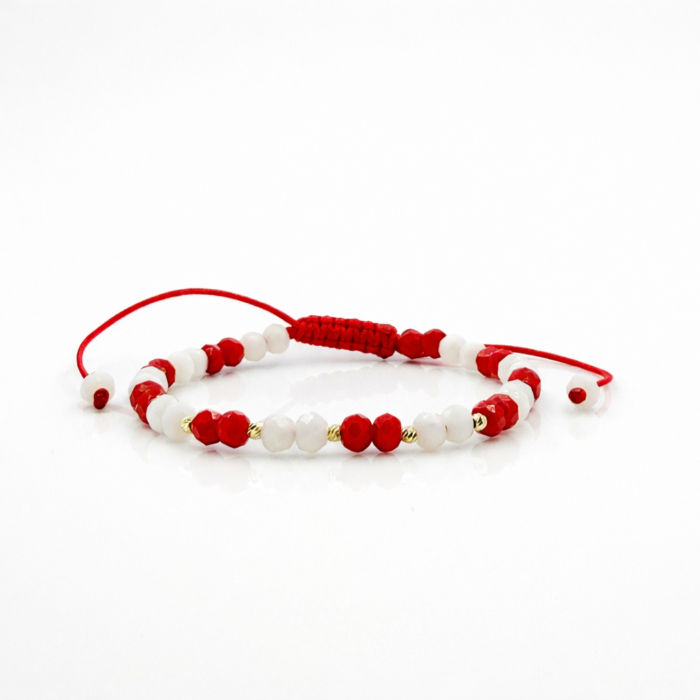Bratara cu snur impletit si bilute din aur 14k in forma de cruce