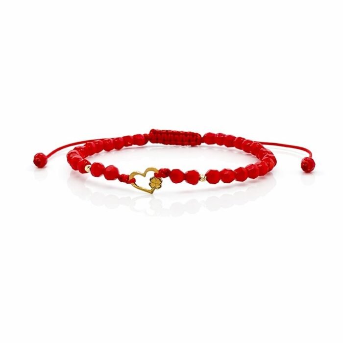 Martisor bratara din aur 14K – Inima cu trifoi si 2 bilute
