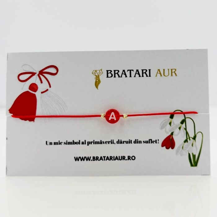 Martisor bratara cu snur, 2 bilute din aur 14k si initiala – la alegere