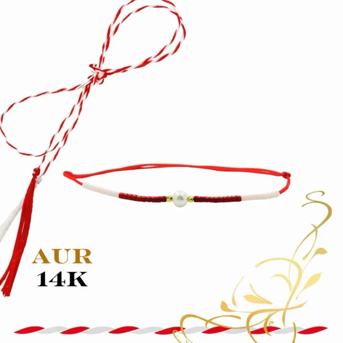 Martisor bratara din aur 14K – perla, margelute miyuki si bilute