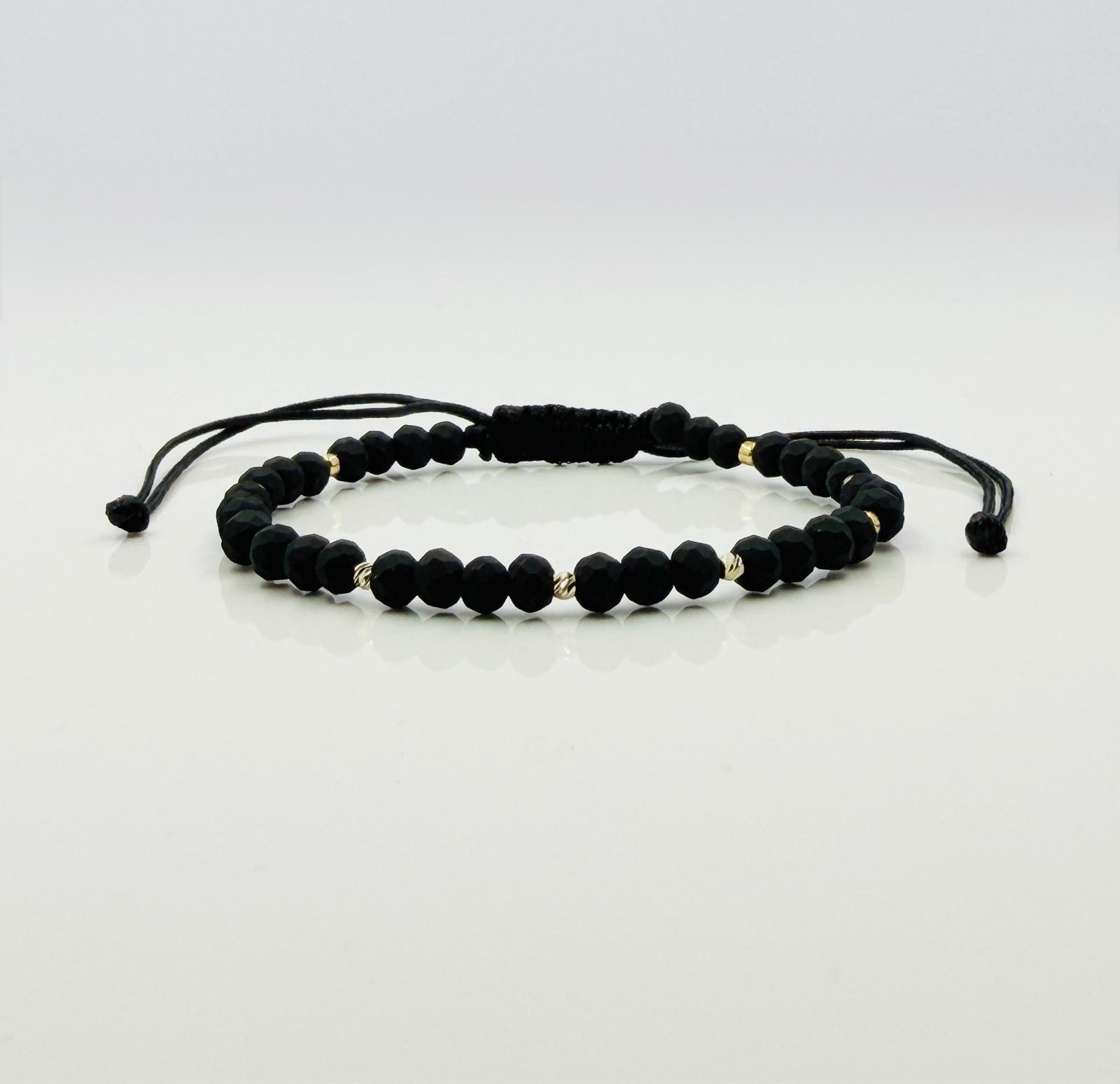 Bratara cu onix si 10 bilute din aur 14k