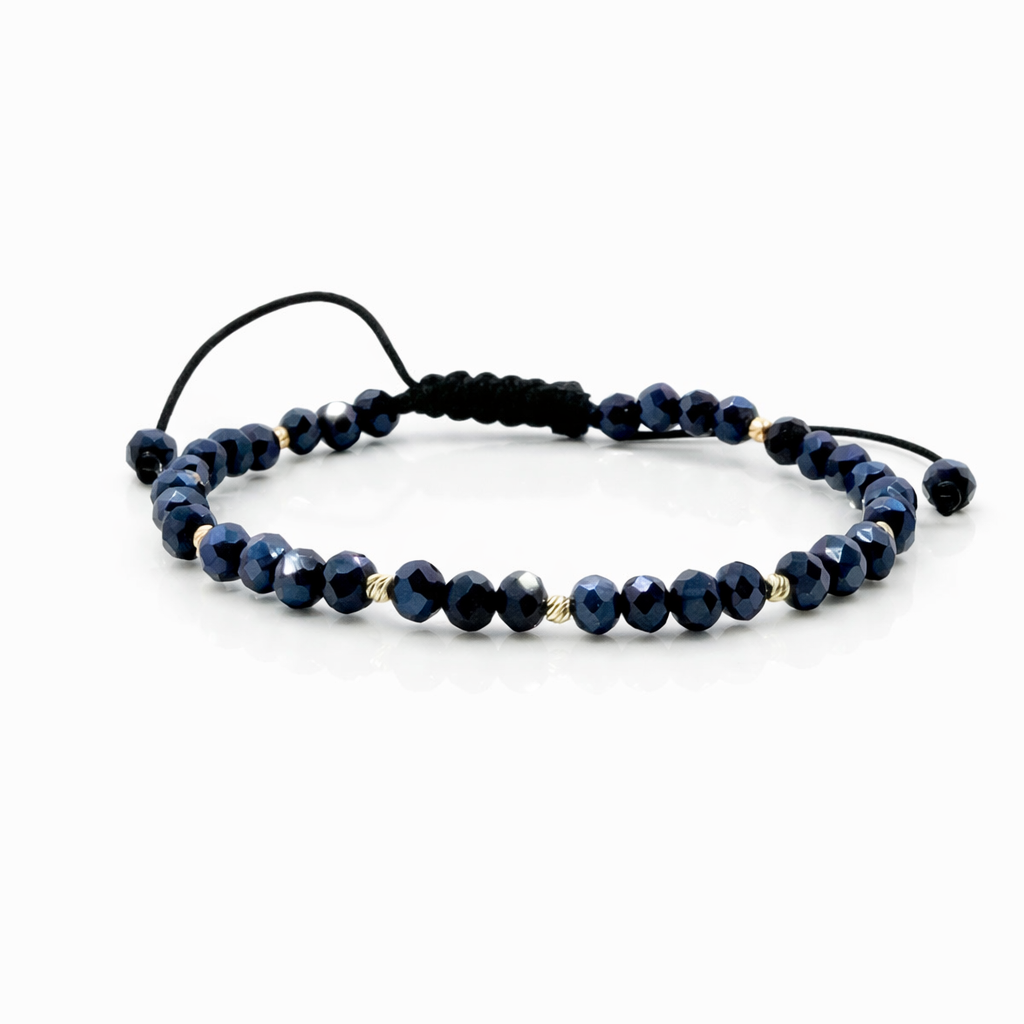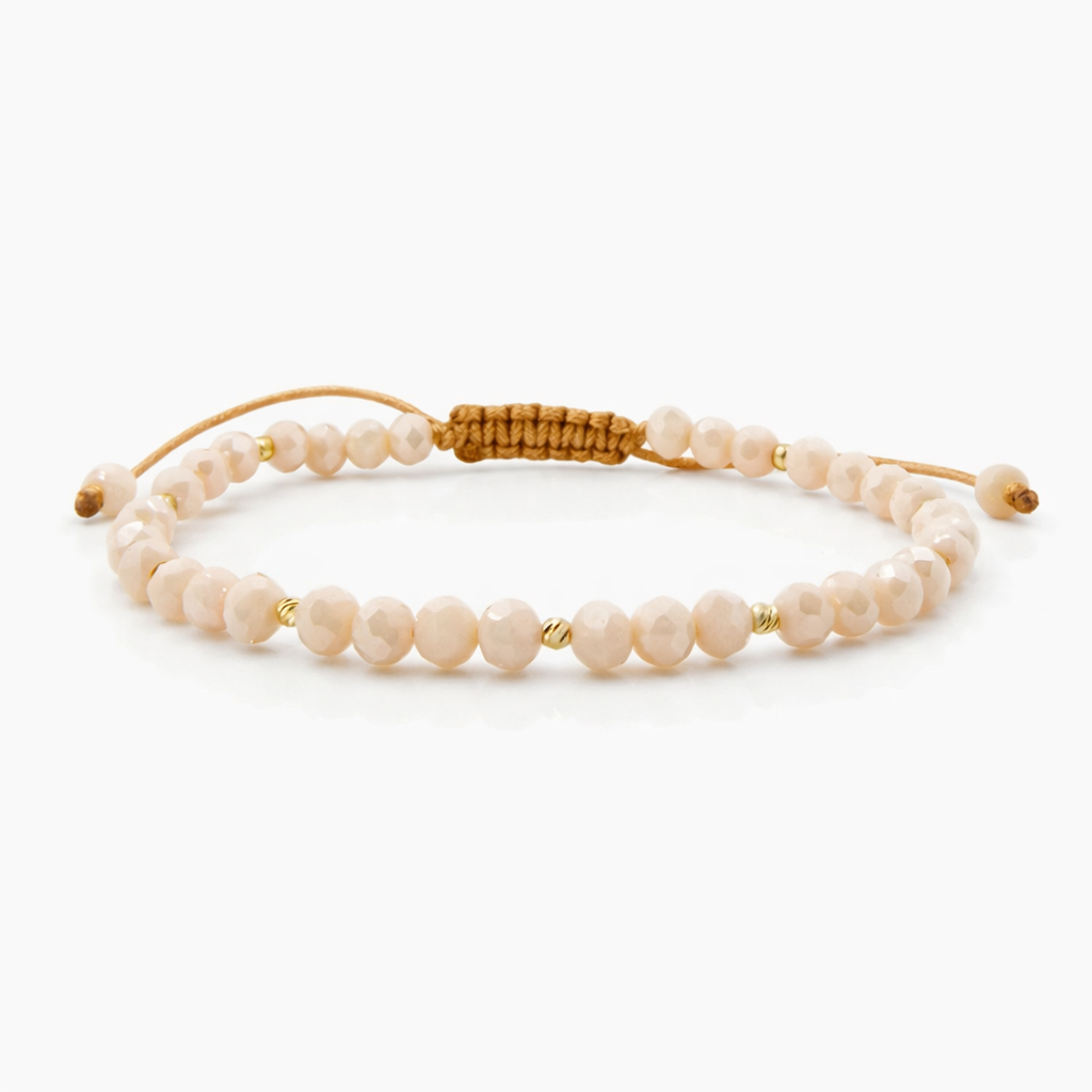 Adaugă un strop de strălucire stilului tău cu brățara noastră delicată, realizată din aur de 14k, cristale rafinate și margelute Miyuki.