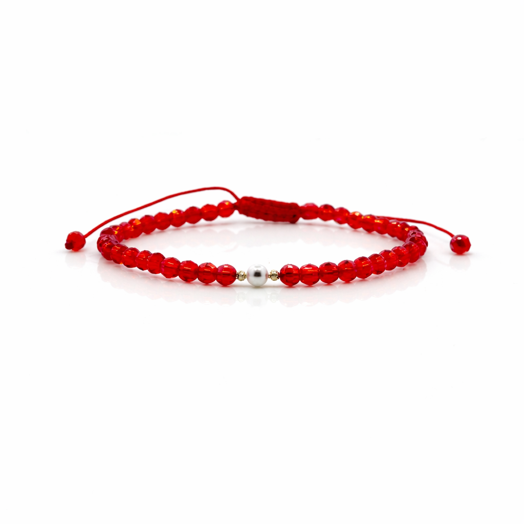 Rafinată și plină de strălucire, această brățară delicată adaugă o notă de eleganță oricărei ținute. Realizată manual, brățara îmbină armonios biluțele din aur 14k cu o perlă centrală naturală, simbol al purității și feminității, completată de cristale colorate ce aduc un strop de veselie și rafinament.
