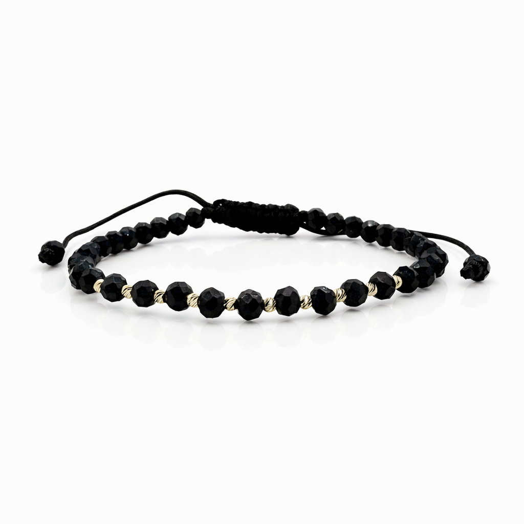 Brățara cu cristale rotunde și 10 biluțe de 2mm din aur de 14k este un accesoriu elegant, perfect pentru a adăuga o notă de rafinament oricărei ținute.
