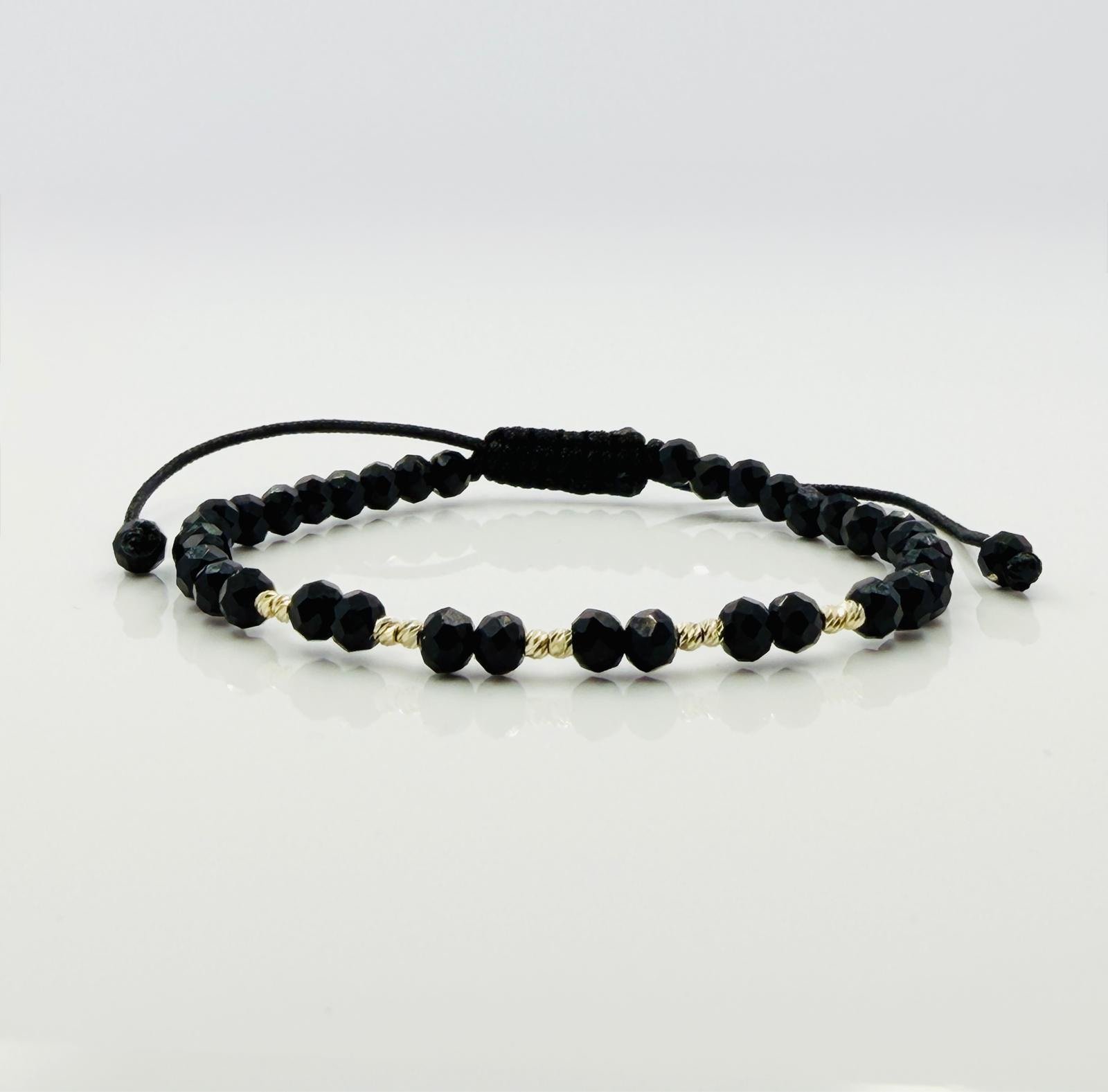 Brățara cu cristale rotunde și 10 biluțe de 2mm din aur de 14k este un accesoriu elegant, perfect pentru a adăuga o notă de rafinament oricărei ținute.