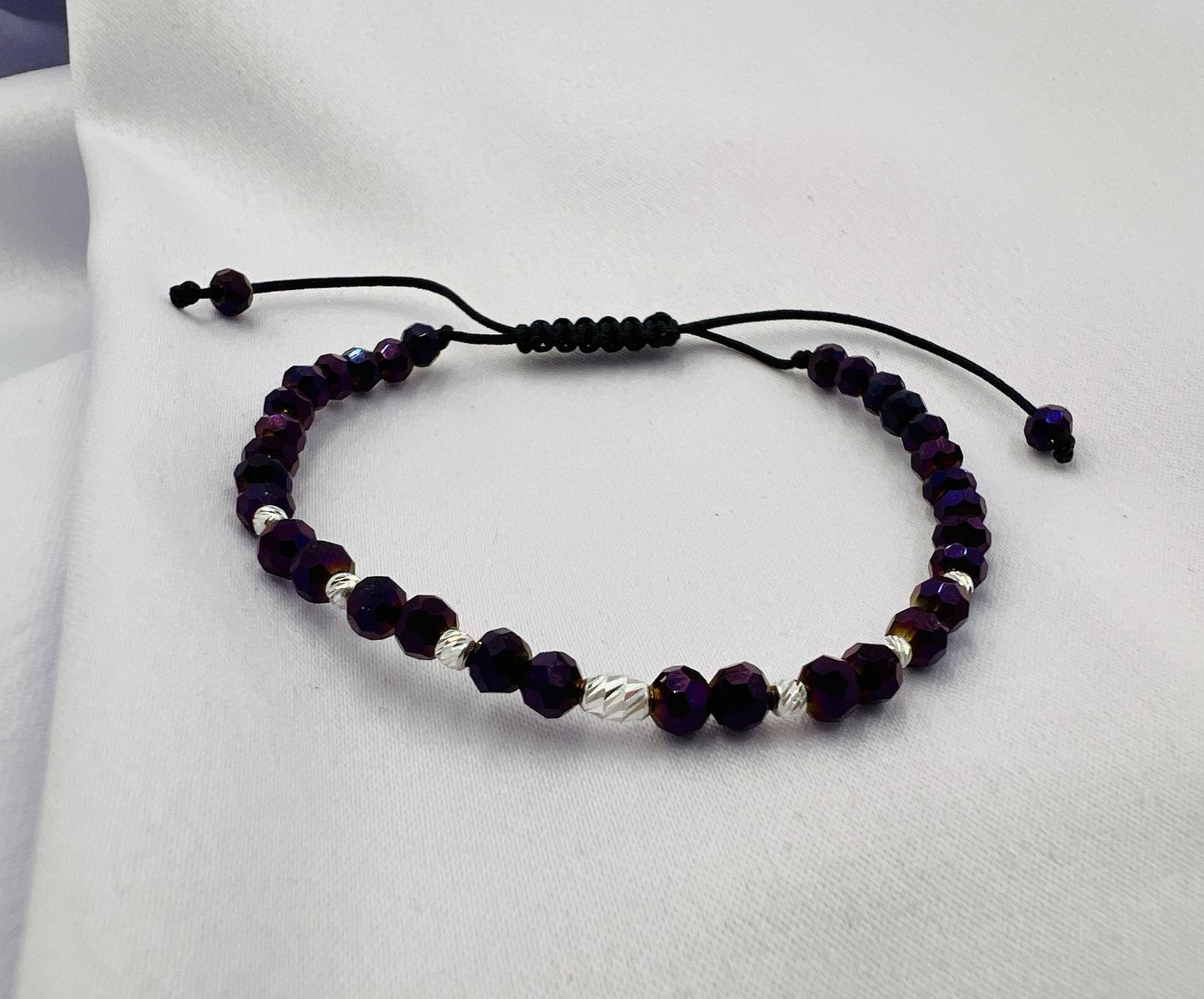Brățară realizată cu șnur fin de mătase și 6 biluțe de 2.5mm + 1 bila tubulara