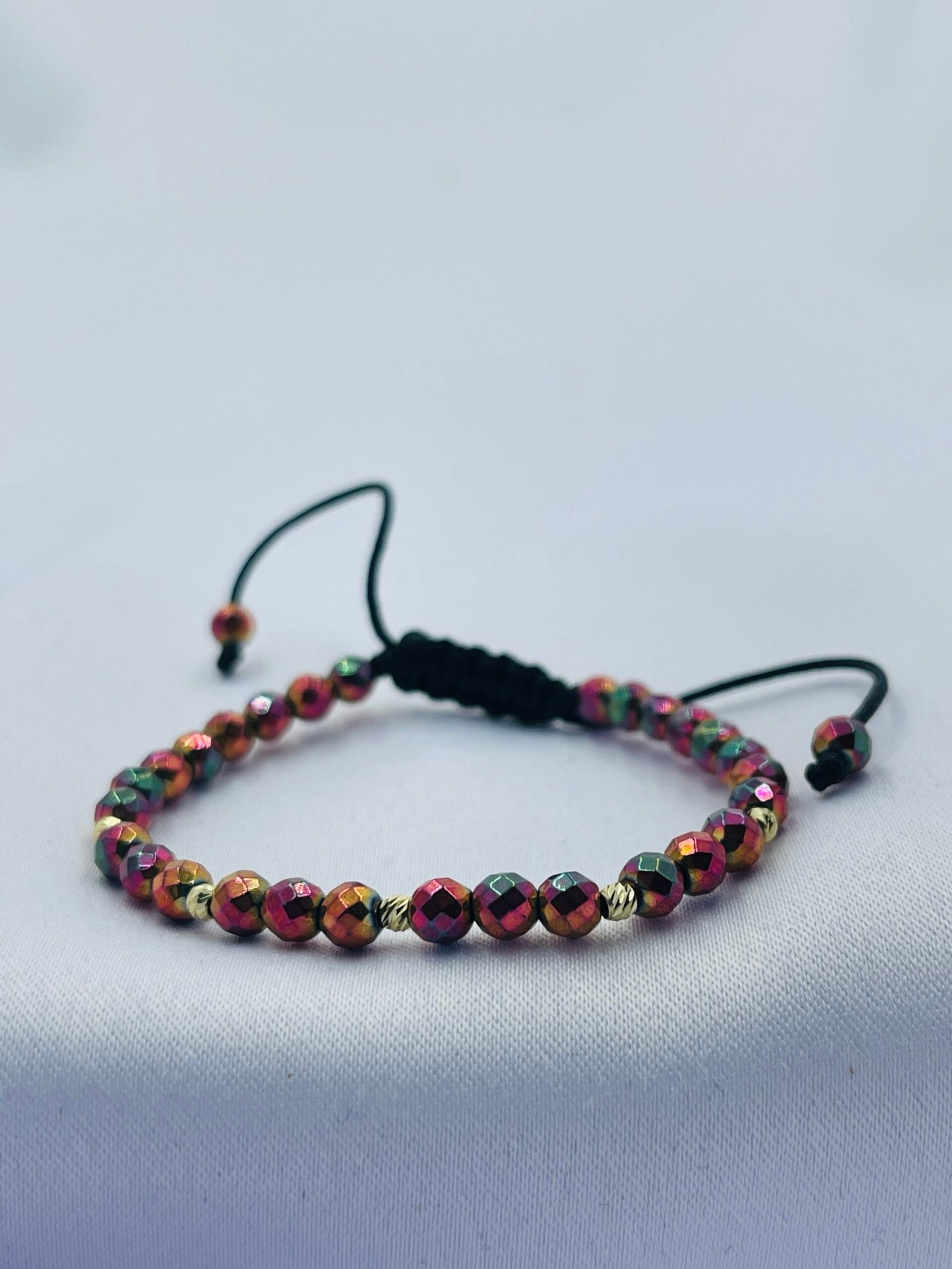 Descoperiți eleganța rafinată a brățării cu hematit multicolor fațetat, un accesoriu ce îmbină frumusețea naturală cu un design sofisticat.