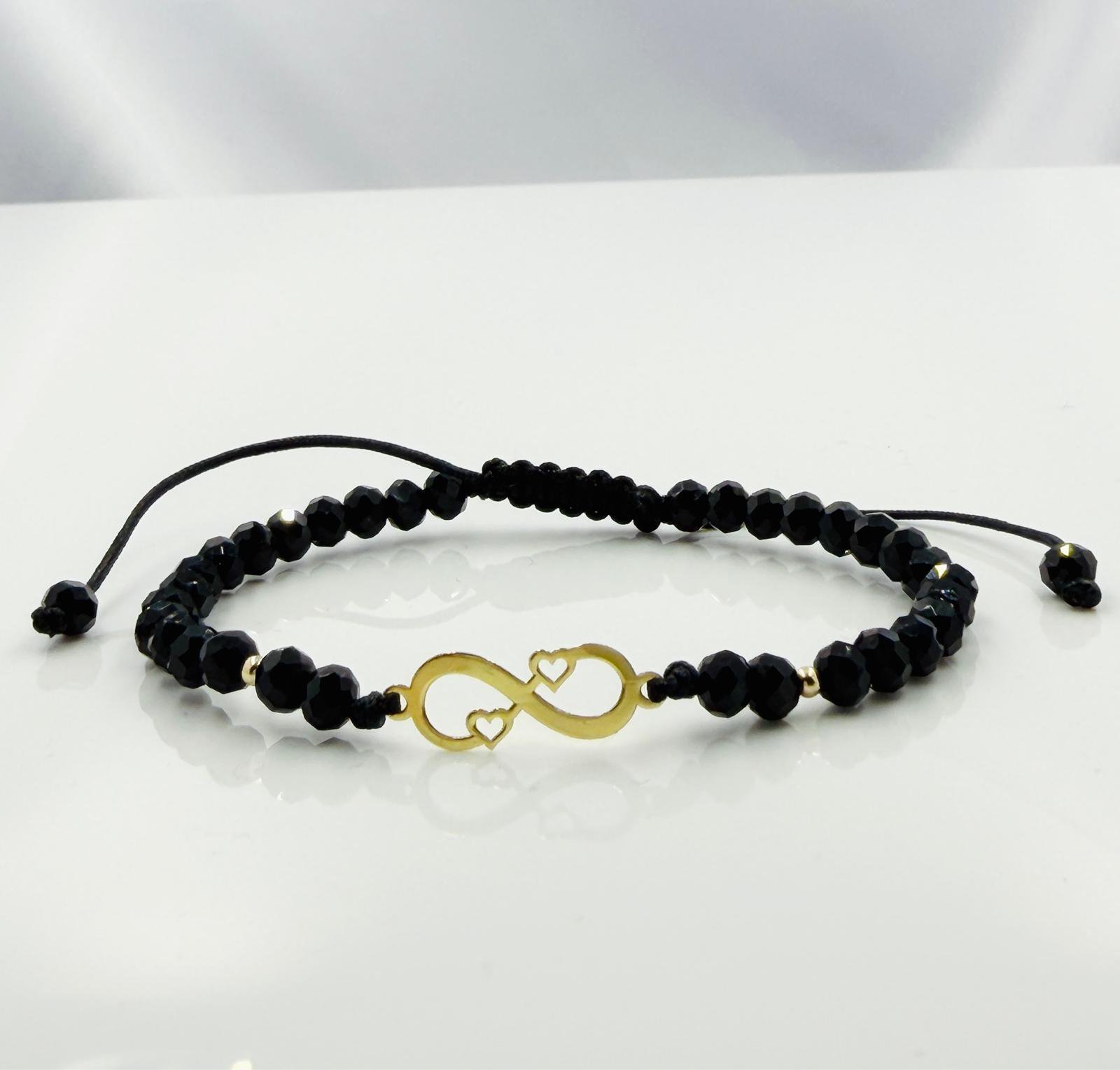 Această brățară cu cristale din sticla, biluțe striate din aur 585 14K si infinit cu inimioare este printre preferatele clienților noștri, având un design elegant și fiind ușor de purtat și asortat în diverse ținute vestimentare.