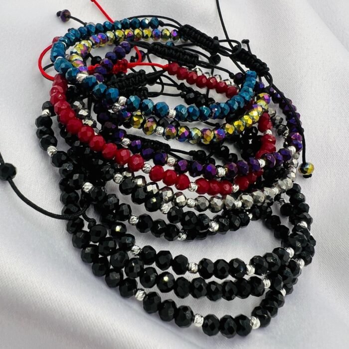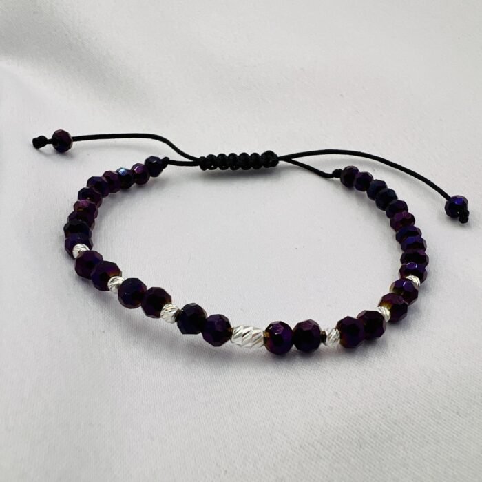 Brățară realizată cu șnur fin de mătase și 4 biluțe disco de 2.5mm din argint 925