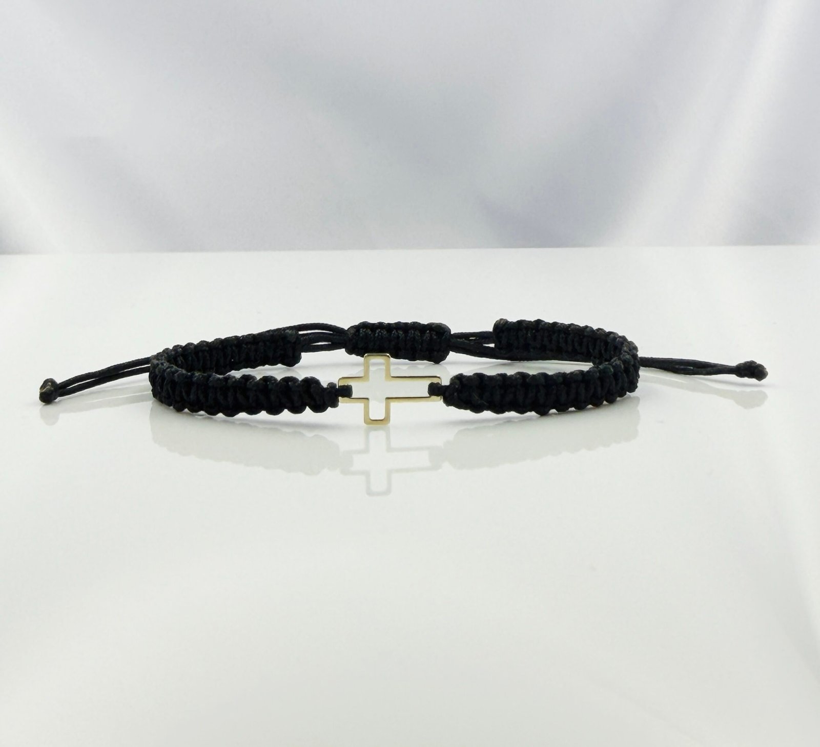 Brățară realizată cu șnur și cruce decupata din aur 585 14k