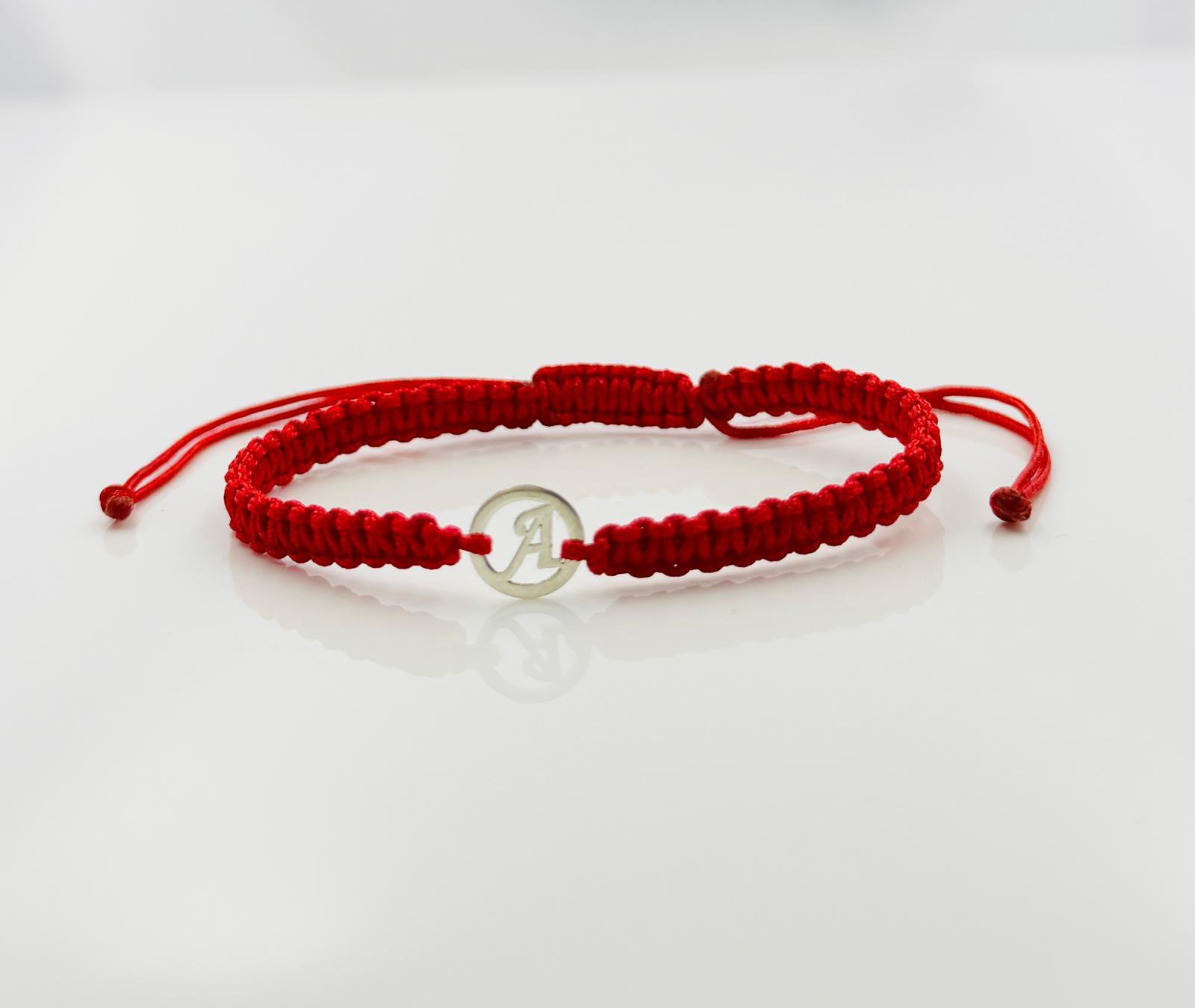 Brățară cu șnur și inițială în cerculeț 1 cm, Argint 925