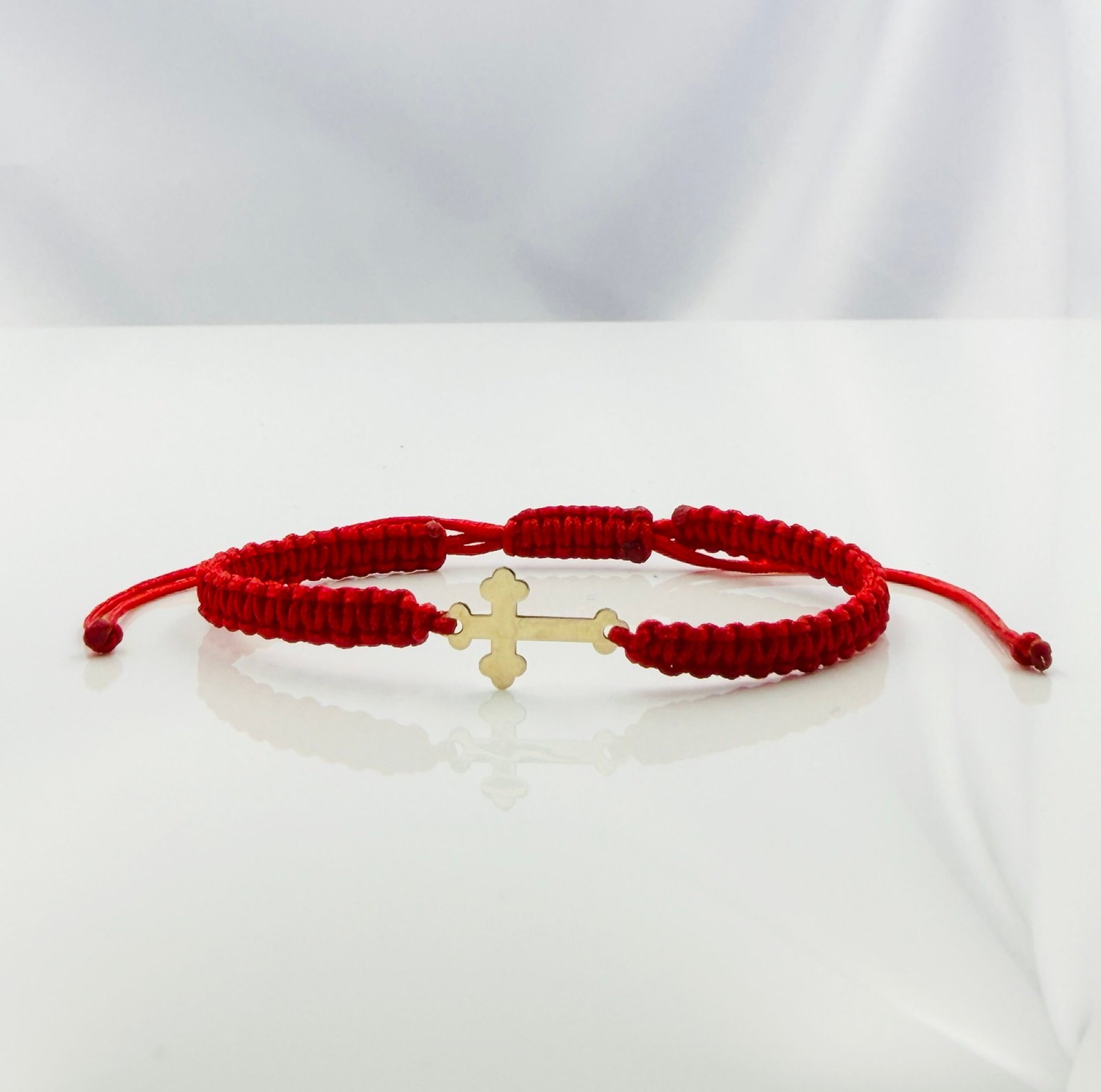Brățară realizată cu șnur și link cruce plina aur 585 14K