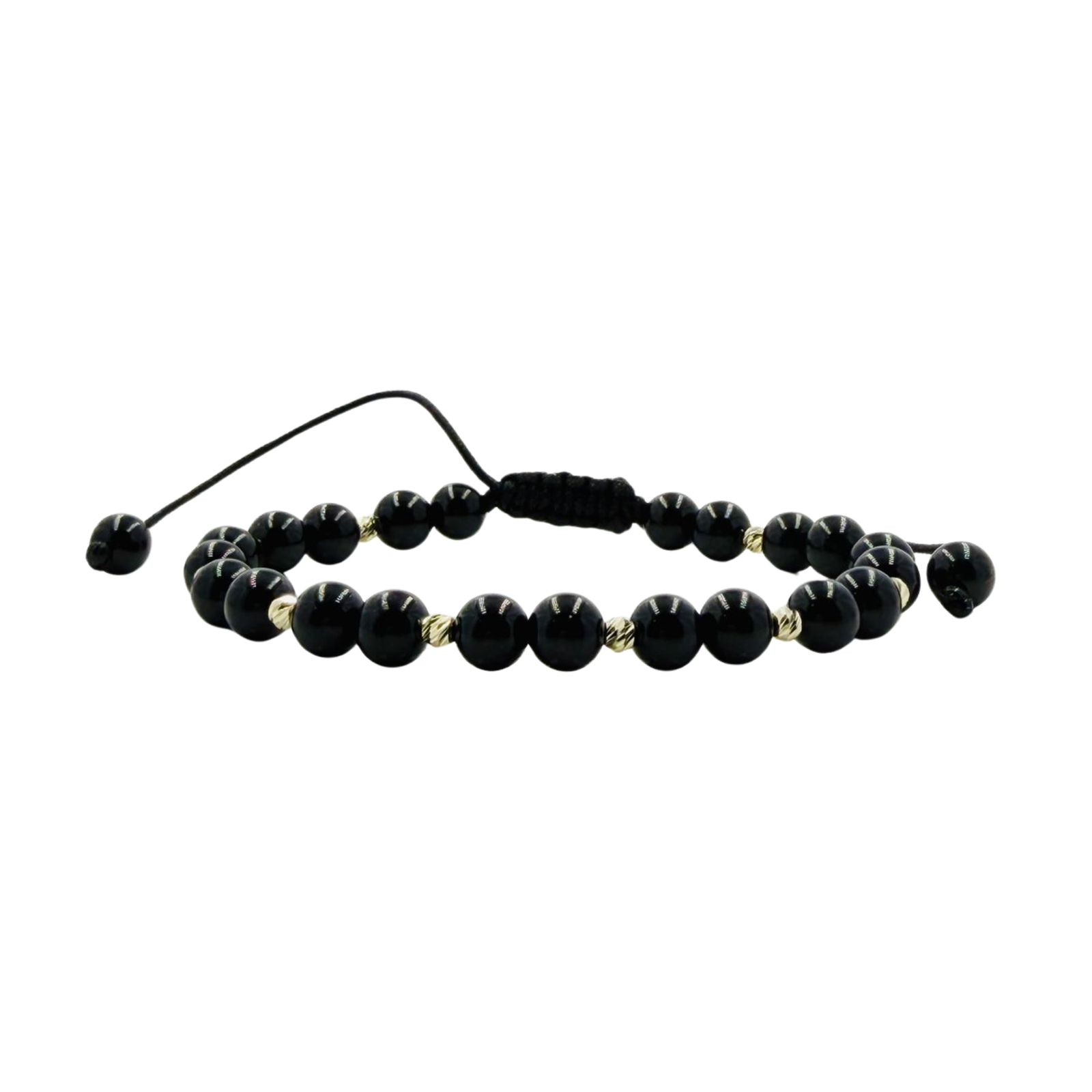 Brățara cu onix și 10 biluțe de aur de 14k este un accesoriu elegant, perfect pentru a adăuga o notă de rafinament oricărei ținute.